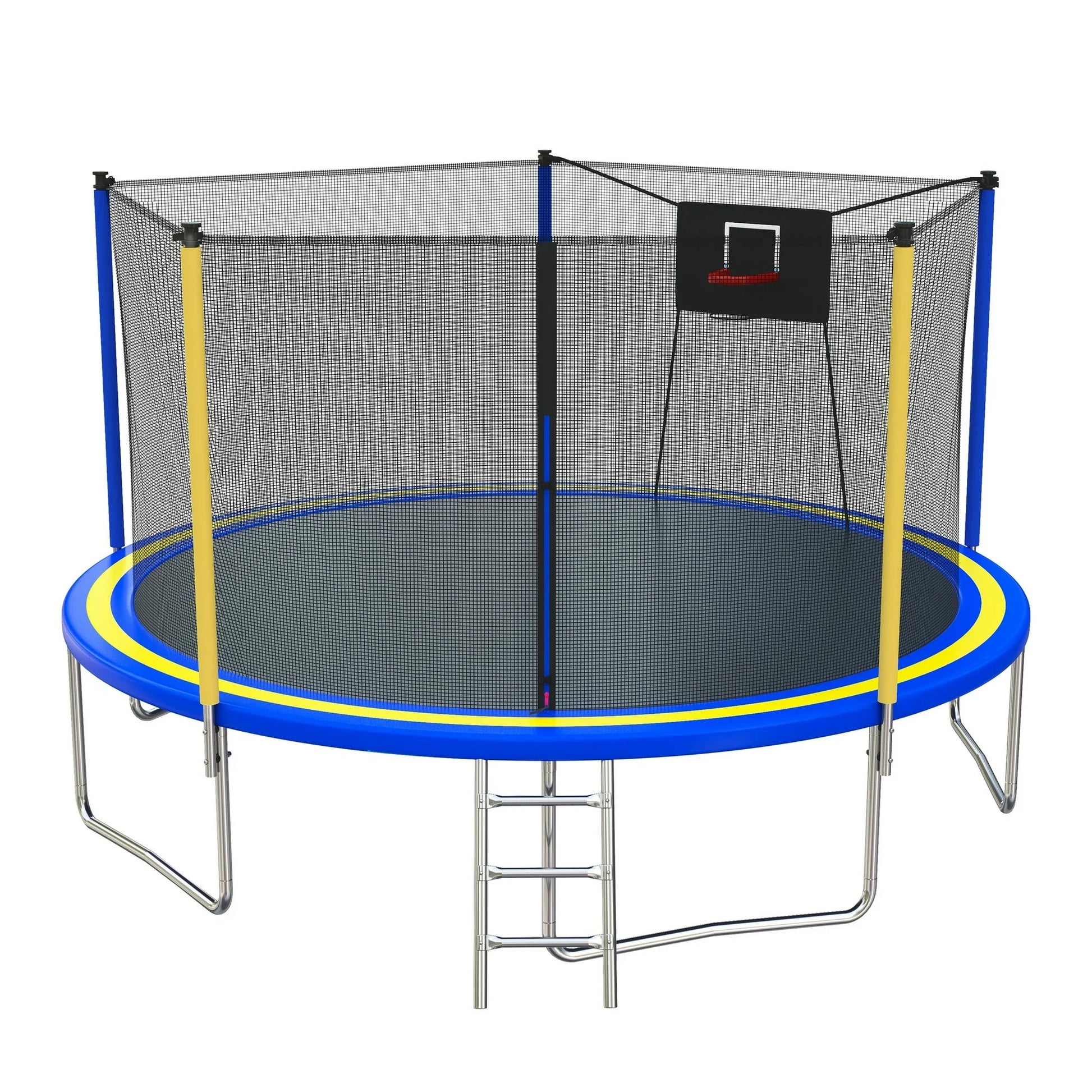 14FT Trampoline with Enclosure for Kids and Adults, SEGMART Upgraded Kids Recreational Outdoor Trampoline with Basketball Hoop, Ladder, Heavy Duty Round Backyard Trampoline for Indoor Outdoor