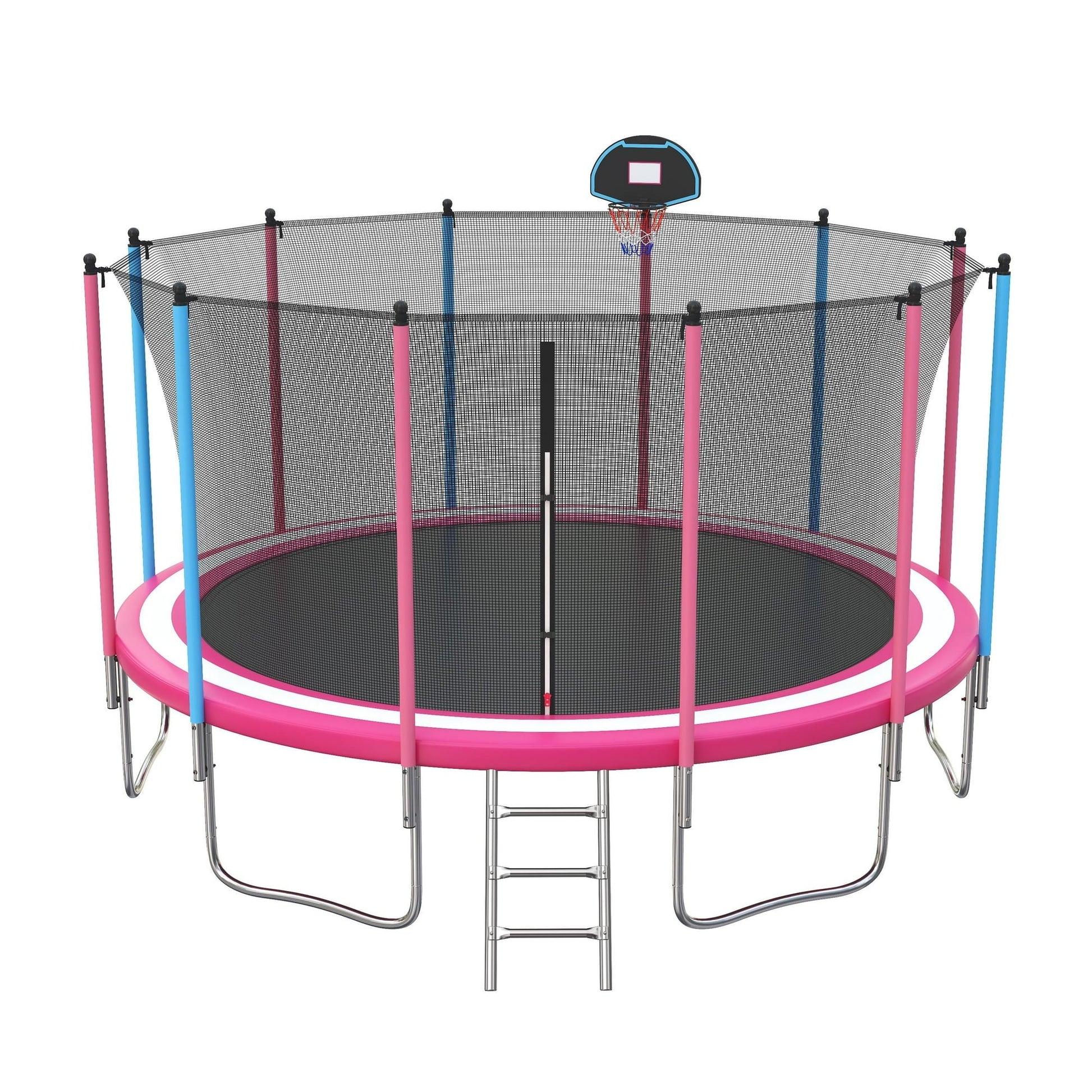 16' Trampoline for Kids with Basketball Hoop, SEGMART Upgraded Kids Outdoor Trampoline with Enclosure Net and Ladder, Heavy Duty Round Recreational Trampoline for Indoor Outdoor Backyard