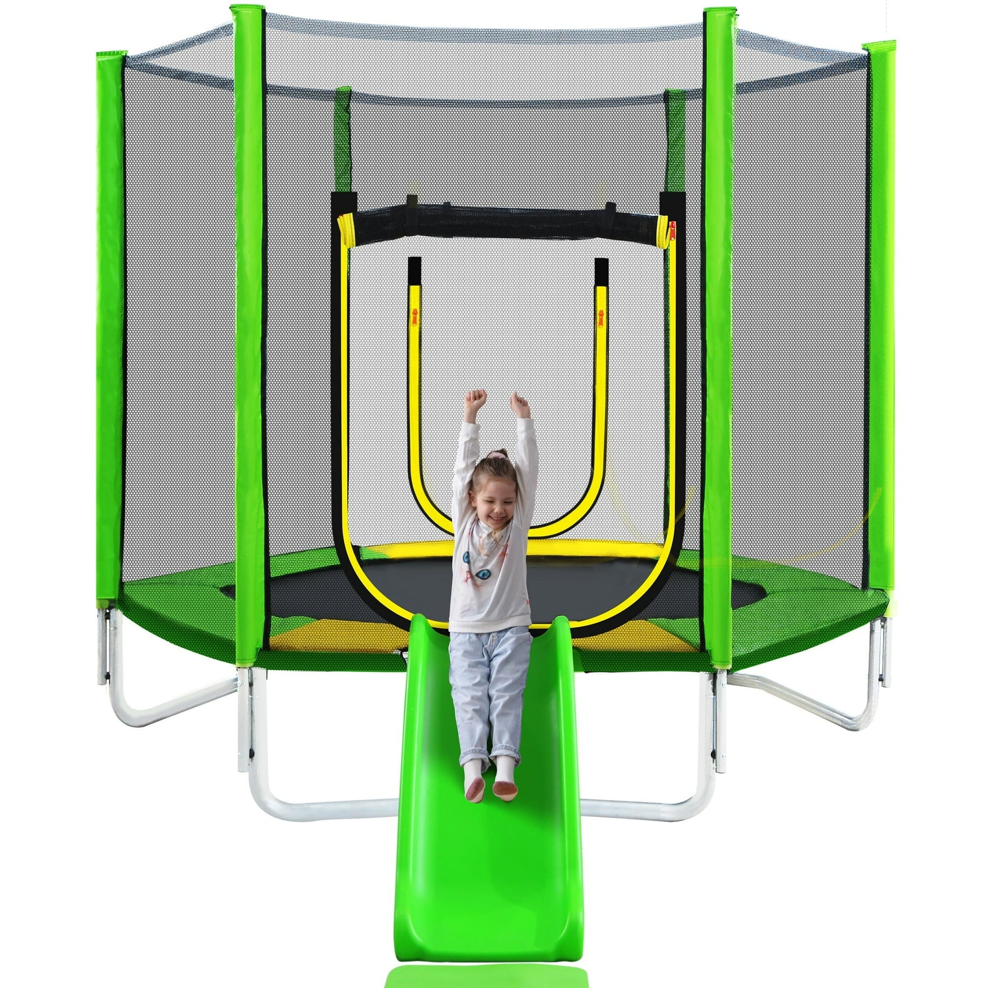 7FT Trampoline for Kids with Safety Enclosure Net, SEGMART Toddler Trampoline with Removable Slide, Upgrade Recreational Trampoline with Jumping Mat for Indoor Outdoor Backyard, Green