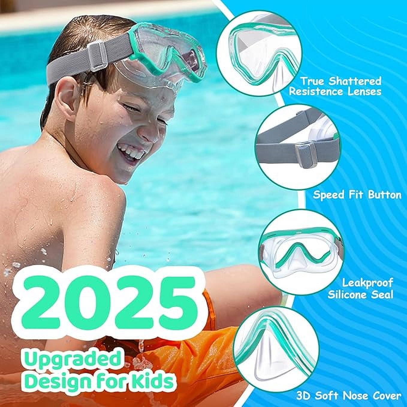 Kids Swim Goggles with Nose Cover, Diving Mask Elastic Fabric Strap Anti Fog Anti Shattered Lens Anti-scratch Anti-fog Swim Mask for Kid Children Swimming Goggles 3-14