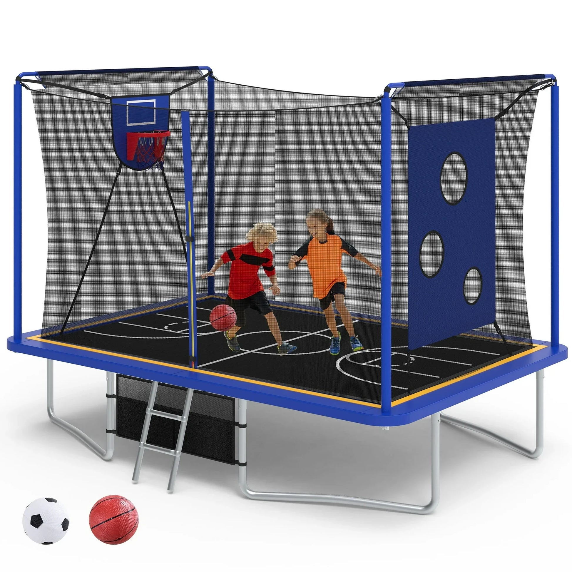 Large Rectangle Trampoline for Kids and Adults, 1600LBS Weight Capacity Recreational Trampoline with Enclosure Net, Basketball Hoop, Segmart Galvanized Heavy Duty Outdoor Trampolines for Patio Garden