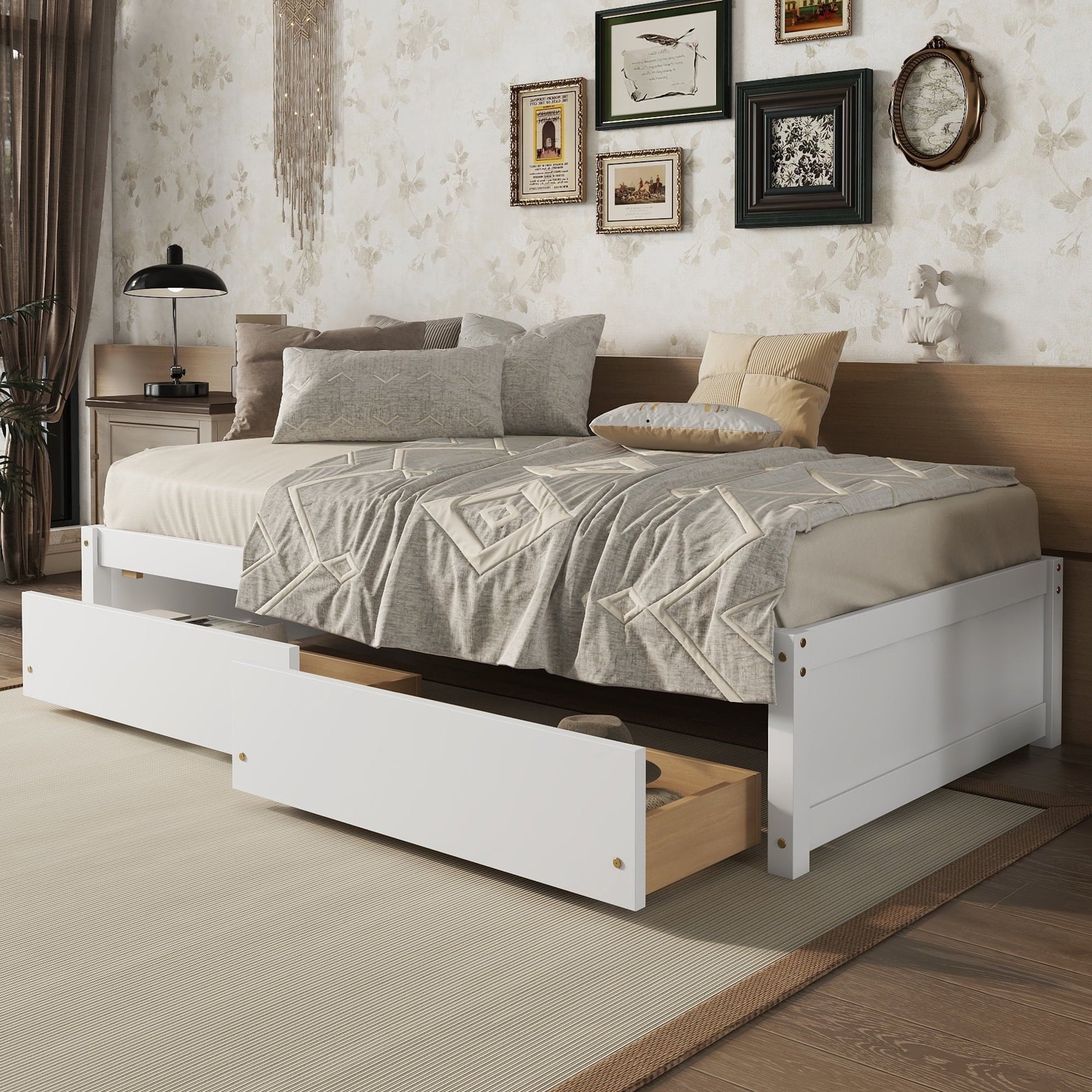 Segmart Twin Daybed Bed for Kid's Room, Farmhouse Style Solid Wood Twin Captain's Bed with 2 Storage Drawers, 200lbs, White