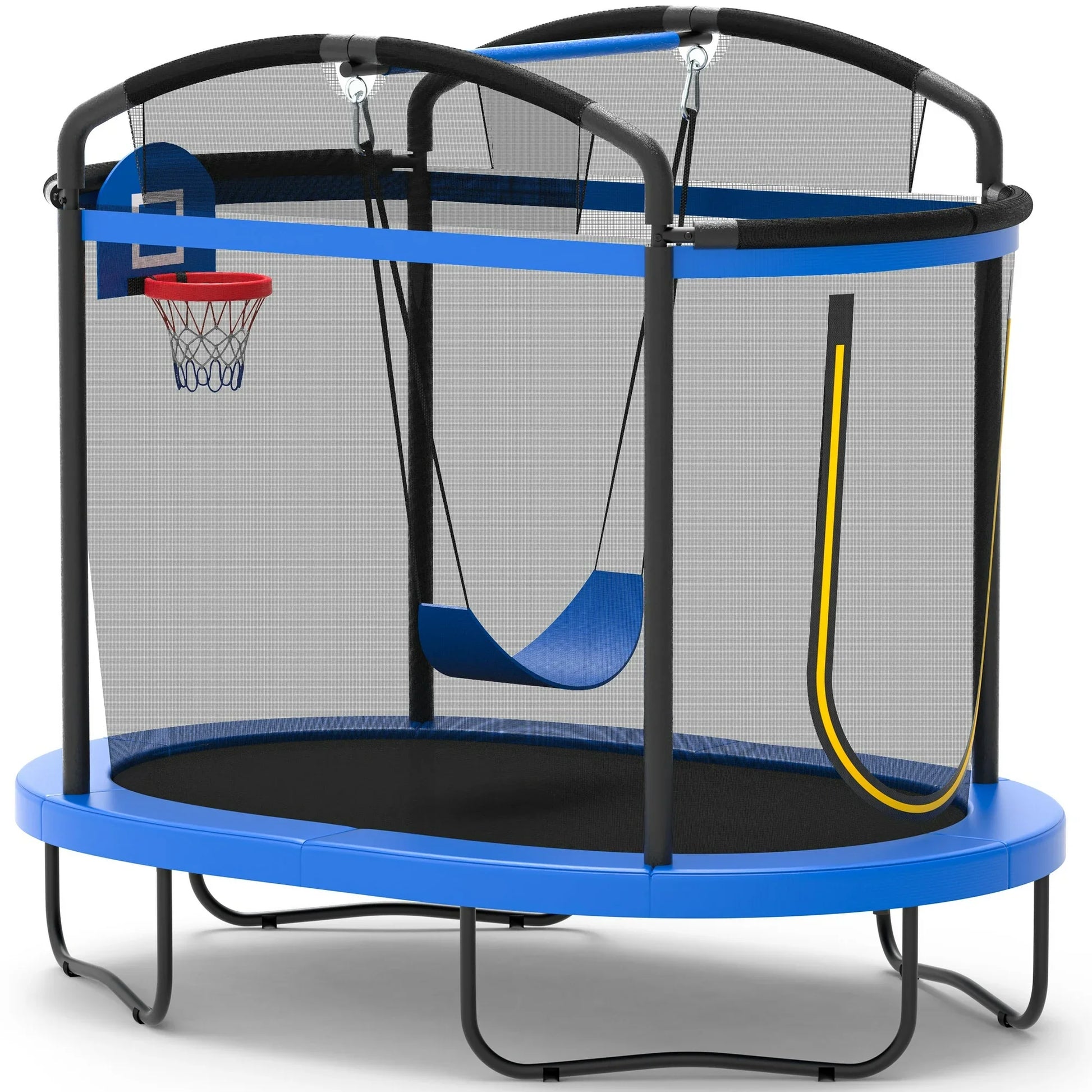 Trampoline for Kids with Enclosure Net, 4×6Ft Toddler Trampoline with Basketball Hoop for Indoor/Outdoor, Mini Trampoline with No-Gap Safe Design for Backyard, Birthday Gifts for Boys/Girls